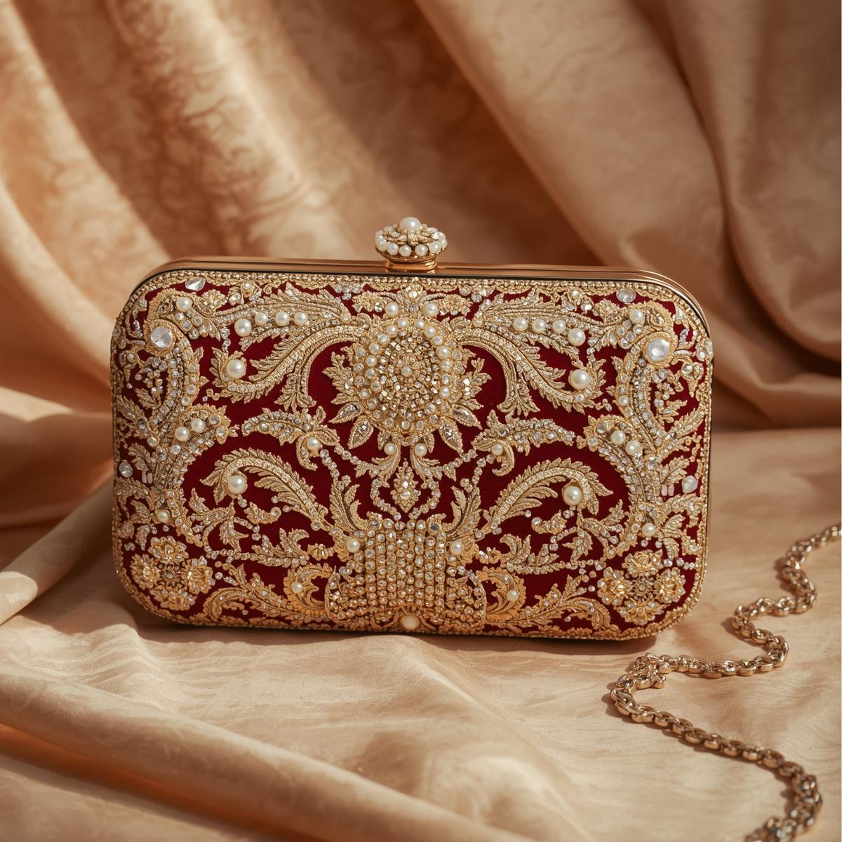 Discover premium women’s clutches, bridal bags, and potli bags — crafted with rich fabrics, fine detailing, and timeless luxury for weddings, festive moments, and statement evenings.